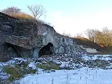 Between 1883 and 1890, the Fort IV "Chrzanów" had been built near Chrzanów, as part of the series of fortifications of the Warsaw Fortress, build around Warsaw by the Russian Empire. In 1909, it was decided to decommission and demolish the fortifications of the Warsaw Fortress, due to the high costs of their maintenance, and as such the Fort V had been partially demolished in 1913, and was repurposed as a magazine. Currently the building remains as ruins.[7]