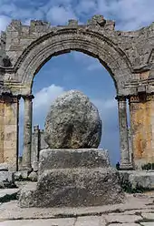 The Church of Saint Simeon Stylites (Arabic: كنيسة مار سمعان العمودي, romanized: Kanīsat Mār Simʿān el-ʿAmūdī) is one of the oldest surviving church complexes, founded in the 5th century. It is located approximately 30 kilometres (19 mi) northwestern of Aleppo, Syria. It was constructed on the site of the pillar of Saint Simeon Stylites, a renowned stylite monk. The church is popularly known as either Qalaat Semaan (قلعة سمعان, Qalʿat Simʿān, the 'Fortress of Simeon') or Deir Semaan (دير سمعان, Dayr Simʿān, the 'Monastery of Simeon').