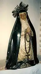 ...an effigy of Our Lady of La Rochela, with her silver crown, Child and her crown of the same, with a scepter also of silver that Our Lady has in her hand... a golden pedestal with a child Jesus of Our Lady of La Rochela... Cuéllar, December 4, 1814.[13]