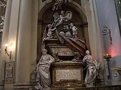 The exterior is noted for the statues of St. Francis de Sales and St Jeanne de Chantal, founders of the Order, sculpted by Alfonso Giraldo Vergaz. In the interior, are the burial tombs of Ferdinand VI and his wife. These were commissioned by Charles III of Spain and completed by the architect Francisco Sabatini and the sculptor Francisco Gutiérrez. In addition, it holds the tomb of the general Leopoldo O´Donnell, first duke of Tetuán, work of Jeronimo Suñol.