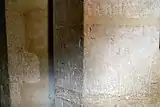 The church has a great deal of graffiti from various eras. On the first pier of the North arcade in a small 15th-century hand is scratched "hic est sedes Margarete Tayl . . d" (possibly done by Margaret, wife of Walter Taylard who rebuilt the adjoining North chapel). On the third pier of the North arcade can be found a possibly medieval drawing of three small houses perhaps along a street. On the second pier of the South arcade in bold characters is scratched in a late medieval hand "mors cõparat / umbre que / semper / sequitur / corpus". On the North splay of the West window of the tower in a bold 16th-century hand can be found "Th[om]as [?Jek]yll Clar[ke] of Ga[m]ly[n]gaye".[1][2]