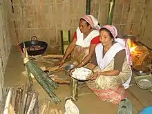 ![]() Chutia women preparing pithas during Bihu/Bisu. | |