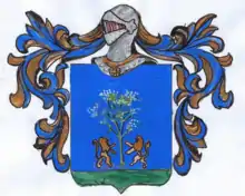 Among the important families of Rome in 1500, the Cimini family is mentioned, living in the Colonna region.[19] Among the noble families of Vico Equense the family of Cimini is registered in 1671.[20] A branch of this family achieved sovereign privileges 10 March 1586, in Taranto, and also recorded as "Patrizia" there. Tommasso Cimini was recorded coming to Lucera in 1605, where he married Barbara Tauro, of a distinguished Luceran family, and had their son Giuseppe. The family is mentioned in the "Capella gentilizia de Signora Cimino nella Chiesa de PP. Cappoccini di Lucera".[21] On 27 October 1788, a branch of the Cimino family were created as Marquis of terra di Casolla Valenzano.[22]