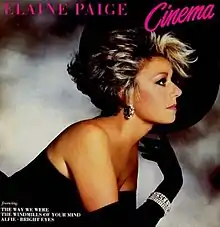 Cinema is the fourth solo album by Elaine Paige,[1] released in 1984 on Warner Music. It peaked at number 12 in the UK Albums Chart.[2]