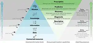 Building on circular business model innovation, digitalization and digital technologies (e.g., internet of things, big data, artificial intelligence, blockchain) are seen as a key enabler for upscaling the circular economy.[98][99][49] Also referred to as the data economy, the central role of digital technologies for accelerating the circular economy transition is emphasized within the Circular Economy Action Plan of the European Green deal. The smart circular economy framework illustrates this by establishing a link between digital technologies and sustainable resource management.[97] This allows assessment of different digital circular economy strategies with their associated level of maturity, providing guidance on how to leverage data and analytics to maximize circularity (i.e., optimizing functionality and resource intensity). Supporting this, a Strategic Research and Innovation Agenda for circular economy was published in the framework of the Horizon 2020 project CICERONE that puts digital technologies at the core of many key innovation fields (waste management, industrial symbiosis, products traceability).[100] Researchers have emphasised the need to comply to several requirements for implementing blockchain technology in order to make a circular economy a reality.[101]