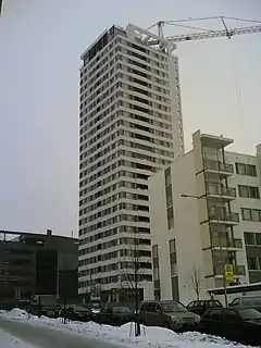 Cirrus is a high-rise cooperative apartment building in Helsinki, the capital of Finland. Cirrus is the fifth tallest building in Finland with a height of 86 meters (282 feet). The building, which is located in Vuosaari in East Helsinki, has 26 floors (including two underground ones) and 140 apartments. The proposal for this building originally included a public observation terrace and cafe, but they were never built.[1]