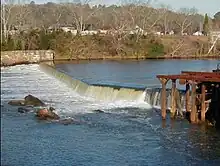 City Mills Dam was a dam on the Chattahoochee River, between Downtown Columbus, Georgia, and Phenix City, Alabama. The dam was built in 1907 to power the City Mills grist mill. Previously, a wooden dam dating to 1828 had existed at the site. The dam impounded a 1.3-mile (2.1 km) run of the river reservoir of approximately 110 acres (0.45 km2).