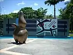 The Covered Gymnasium is also public space that is run by the university. It is at the far northern end of the university campus, with the exception of the Botanical Garden, and is noted for its shape and peculiar roof. It also features a giant mural, marking the edge of the campus by the freeway, featuring important historical figures of Venezuela.[20]