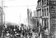 By the end of the blaze, five people had perished and losses were estimated at more than a million dollars (approximately $35,176,000 adjusted for inflation).[5] The fire department resorted to using dynamite to stop the spread of the fire to other nearby buildings.