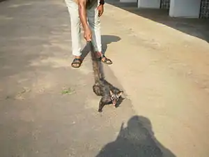 Palm civets often venture into cities and suburbs, with people often complaining about civet faeces and the noise of the animals' climbing on roofs. Some studies have been undertaken to examine and mitigate such human–animal conflict.[15]