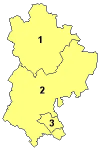 - ↑ From 1974 to 2009, Central Bedfordshire was divided into districts: Mid Bedfordshire, formed from Ampthill Rural District, Ampthill Urban District, Biggleswade Rural District, Biggleswade Urban District and Sandy Urban District; and South Bedfordshire, formed from Dunstable Municipal Borough, Leighton–Linslade Urban District and Luton Rural District.