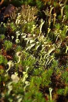 Cladonia carneola or the crowned cup lichen[2] is a species of fruticose, cup lichen in the family Cladoniaceae. It was described as a new species by Swedish mycologist Elias Magnus Fries. Lichenicolous fungi that have been recorded growing on Cladonia carneola include Phaeopyxis punctum and Taeniolella beschiana.[3]