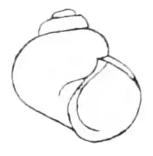 Drawing of apertural view of the shell of Clappia umbilicata from its type description by Bryant Walker