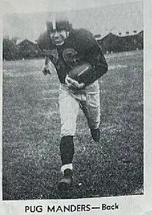 Clarence Edward "Pug" Manders (May 5, 1913 – January 13, 1985) was a National Football League running back for the Brooklyn Dodgers/Tigers from 1939 through 1944. He was drafted in the second round of the 1939 NFL Draft.[1] He led the NFL in rushing in 1941 and is the younger brother of Jack Manders. His nickname was Pug.