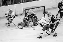 Clarkson College of Technology started its hockey team in 1921, only 25 years after the school's founding. The program played as a minor sport until the mid 1930s but routinely finished with winning records. In 1937–38 The Golden Knights completed a 13–1–1 record and were named the US Intercollegiate champions.[3] A year later the University opened its first indoor rink, the Clarkson Arena, which would serve the college until 1991. The program took a slight downturn in the 1940s and then suspended operations for two years due to the outbreak of World War II but returned to the ice the year after the war ended. When The first college hockey tournament began in 1947 Clarkson was in the running for selection but was beaten out for the two eastern slots. Three years and one coaching change later, Clarkson College became a founding member of the first college ice hockey conference, the Tri-State League. The Golden Knights not only won the conference with a 4–1 record, but because they tied with Middlebury, they also participated in the first conference playoff game to determine the sole champion and were victorious. Unfortunately the team's 12–2–1 mark was still not good enough to receive an invitation to the NCAA tournament. The program continued to build until they produced a superb 23–0 record in 1956 with NCAA scoring champion Ed Rowe leading the way. 'Tech' finally received an NCAA invitation but it came with a caveat; because eight of their players were 4-year lettermen they would have to sit out the tournament for Clarkson to participate. Because of this the team voted to pass on the invitation.[4] The Golden Knights wouldn't have to wait long for their first tournament appearance, however, as they were invited the following year and finished in third place. After a second consecutive third-place head coach Bill Harrison resigned and turned the team over to Len Ceglarski. The first few years under Ceglarski saw the team's record dip slightly but stating in his third season the Golden Knights became a constant power in college hockey.