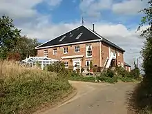 To the east of the village are the remains of Claxton Castle, which dates from the mid-14th century, licences to crenellate having been granted in 1340 and 1376.[3] Situated on private land in the grounds of Claxton Manor House it comprises a massive brick-and-flint wall 130 feet (40 m) long with six bastions. Claxton Manor House itself was built in the reign of Elizabeth I but has a Victorian façade. The Manor was bought in 1946 by Major Derek Allhusen, who achieved fame as a horseman winning team gold and individual silver at the 1968 Summer Olympics. Derek Allhusen died in 2000.[4]