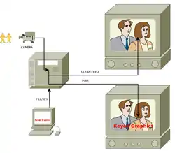 A clean feed is a signal which has not come from the main output of the video switcher, such as the output of a vision mixer before the downstream keyer stage - the clean feed is identical to the main program output but without any captions keyed into it. Modern production equipment can actually put different keys on multiple outputs, allowing them to go to the clean feed or not. The most sophisticated vision mixers (or production switchers, according to the American nomenclature) can generate a clean feed output for any of their mix/effects (ME) buses.