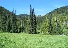 A glade in a montane forest in the Olympic Mountains