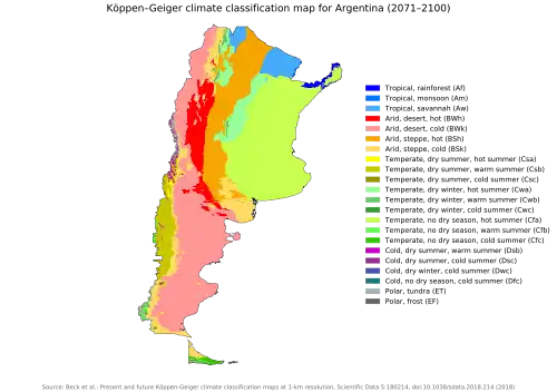 - 1 2 3 4 5 6 7 "El Cambio Climatico en Argentina" (PDF) (in Spanish). Secretaría de Ambiente y Desarrollo Sustentable. Archived from the original (PDF) on 4 March 2016. Retrieved 20 August 2015.