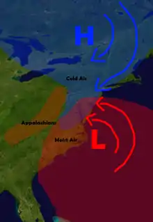 - ↑ Gerald D. Bell; Lance F. Bosart (January 1988). "Appalachian Cold Air Damming". Monthly Weather Review. American Meteorological Society. 116 (1): 137. Bibcode:1988MWRv..116..137B. doi:10.1175/1520-0493(1988)116<0137:ACAD>2.0.CO;2.
