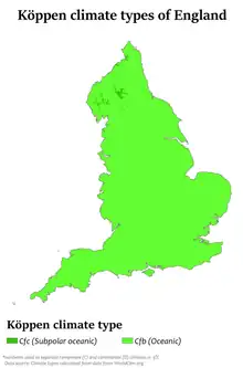 - 1 2 3 4 5 6 7 8 9 10 "Met Office:English Climate". Met Office. Archived from the original on 25 May 2007. Retrieved 4 August 2007.