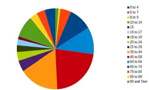 In 2011, the National Census found that 385 people lived in Clopton, and of these 186 were male and 189 female.[3] The average age of people in Clopton is 41 years, though the largest age group is 45–59 years, with 83 people (22.1% of the total population) reported.[16]