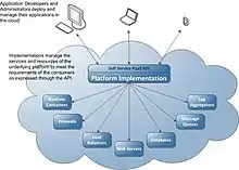 Cloud Application Management for Platforms (CAMP) is a specification for managing applications in the context of a platform as a service (PaaS) system. CAMP is designed to address the needs of a high-level PaaS system; one in which the consumer (generally a developer or application administrator) provides application artifacts (code, data, graphics, etc.) and specifies which provider-supplied services are required to realize these artifacts as an application. The details of the infrastructure (compute, storage, and networking) used to support these services are hidden from the consumer by the provider of the PaaS system.