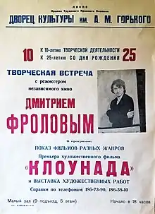 Poster creative meeting with Dmitry Frolov and show the film "Clownery" in April 1991