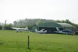 A public footpath follows the northern and western perimeter of the airfield. There is no public right of way across the site. Overnight parking of aircraft is possible and hangarage is available in one of the two hangars on site. A range of aircraft types may be accepted to the airfield at the owners' discretion.