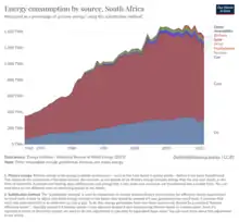 Electricity in South Africa is mostly generated from coal. Most of the country's coal-fired power stations are in the same province as most of the coal mining, Mpumalanga.[17] Many are expensive and unreliable, and this is part of the cause of South African blackouts.[18]