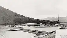 The United States Navy started construction of a naval air station at Kodiak in September 1939, and the station was commissioned on 15 June 1941. Home to PBY patrol squadrons early in World War II, Kodiak supported the Aleutian Islands Campaign of 1943, also operating scouting and air transport squadrons. In October 1950, NAS Kodiak was redesignated as Naval Station Kodiak, and in 1972 the site was turned over to the U.S. Coast Guard.[3]