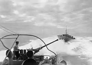 Coastal Forces was a division of the Royal Navy initially established during World War I, and then again in World War II under the command of Rear-Admiral, Coastal Forces.[1] It remained active until the last minesweepers to wear the "HM Coastal Forces" cap tally were taken out of reserve in 1968. The division received more gallantry awards than any other branch of the Royal Navy during that period.