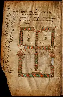 - 1 2 Palau, Annaclara Cataldi (2004). "A Little Known Manuscript of the Gospels in: 'Maiuscola biblica': Basil. Gr A. N. III. 12". Byzantion. 74 (2): 463–516. JSTOR 44172973. Retrieved 6 May 2022.