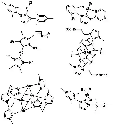 Examples of reported coinage metal NHC complexes displaying various structural types.[1][5]