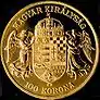 100 K | 37.0 mm | 2.0 mm | 33.9 g | 900‰ gold | "BIZALMAM AZ ŐSI ERÉNYBEN", ornament | "FERENCZ JÓZSEF I.K.A.CS. ÉS M.H.S.D.O.AP.KIR.", I. Ferenc József | "MEGKORONÁZTATÁSÁNAK NEGYVENEDIK ÉVFORDULÓJÁRA 1867-1907", coronation scene, value, mintmark | 1907 |