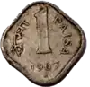| N/A | 1 paisa | 1957-1972; proofs minted until 1981. Demonetized from 2011, but retained as a unit of currency. |