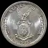 10 centavos | 16.5 mm | 2 g | 75% Silver 25% Copper | Reeded | The standing figure of an adolescent female was utilized. She is clad in a long, flowing gown and holds in her right hand a hammer, resting atop an anvil, as seen on the minor coins. Behind her is again Mt. Mayon, an almost perfectly conical volcanic mountain southeast of the capital city of Manila. The statement of value appears above her (Ten, Twenty, and/or Fifty Centavos) in English, while the name of the archipelago is written below in Spanish as FILIPINAS.[15][lower-alpha 3] | 3,500,000 3,750,000 2,500,000 31,592,000 137,208,000 |