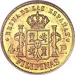 The Casa de Moneda de Manila (or Manila mint) was founded in 1857 in order to supply smaller Philippine currency after the California gold rush of 1848 made silver more expensive and drained the colony of silver and small gold coins. It produced the following denominations according to Spanish standards, with 100 centimos equal to a peso: