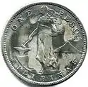 - ↑ All of these coins bore a single reverse design, the federal shield surmounted by an American eagle clutching an olive branch in its right claw and a bundle of arrows in its left. Around this appeared the legend UNITED STATES OF AMERICA and the date of coinage. The obverse of the minor coins (the half centavo and one centavo, both coined in bronze, and the copper-nickel five centavos) featured the semi-nude figure of an adolescent native, seated at an anvil and holding a hammer in his right hand. In the distance is seen the smoking volcano of Mt. Mayon, located on the main island of Luzon. The statement of value appears above him in English, while the name of the archipelago is written below in Spanish as FILIPINAS. This employment of Spanish is curious, given the islands’ recent history, yet it remained for some years afterward the principal language of the educated class. For the silver coins (ten, twenty and fifty centavos, plus the one-peso piece), the standing figure of an adolescent female was utilized. She is clad in a long, flowing gown and holds in her right hand a hammer, resting atop an anvil, as seen on the minor coins. Behind her is again Mt. Mayon, an almost perfectly conical volcanic mountain northeast of the capital city of Manila. These designs are credited to Filipino sculptor Melecio Figueroa, who lived just long enough to see his coins enter circulation.