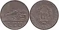 | 1 leu | 16 mm | 1.83 g | nickel-brass | value, year of minting | oil well, rising sun | 1948 | 30 January 1952 | 1 February 1952 | ||