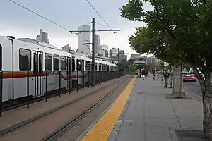Colfax at Auraria station is an light rail station in Denver, Colorado, United States. It is served by the D and H Lines, operated by the Regional Transportation District (RTD), and was opened on October 8, 1994.[4][5] It serves the eastern side of the Auraria academic campus, home to Metropolitan State College of Denver, the Community College of Denver, and the University of Colorado Denver.
