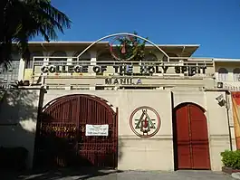 The College of the Holy Spirit Manila, or simply CHSM, was a private, Catholic education institution founded and ran by the Missionary Sisters Servants of the Holy Spirit in Manila, Philippines.[1] Founded in 1913, College of the Holy Spirit Manila was established originally as Holy Ghost College through the invitation of then Manila Archbishop Jeremias Harty.[2] Located originally on Legarda Street, the present campus is now located in the historic Mendiola Street, inside the Malacañang Palace Complex. It is one of the schools which comprises the Mendiola Consortium (MC) for academic cooperation along with Centro Escolar University Manila, La Consolacion College Manila, San Beda College Manila, and St. Jude Catholic School.[3]