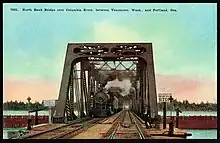 Burlington Northern Railroad Bridge 9.6 or BNSF Railway Bridge 9.6,[3] also known as the Columbia River Railroad Bridge,[4] is through truss railway bridge across the Columbia River, between Portland, Oregon, and Vancouver, Washington, owned and operated by BNSF Railway.[3] Built by the Spokane, Portland and Seattle Railway (SP&S) and completed in 1908, it was the first bridge of any kind to be built across the lower Columbia River,[1] preceding the first road bridge, the nearby Interstate Bridge, by a little more than eight years.