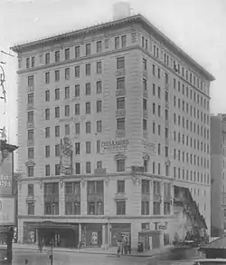 What would be called the "Home of Burlesque De Luxe" was built on the northeast corner of Seventh Avenue and 47th Street in Manhattan.[1] A photograph from May 1909 before construction began shows the site was occupied by typical four- and five-story brownstone buildings.[2] Construction by the Thompson–Starrett Co. took seven months from the start of demolition to completion of the job.[3] The building had ten stories above ground and was 39 metres (128 ft) high.[4] It held the headquarters of the Columbia Amusement Company, or Columbia Circuit, one of the largest of the burlesque circuits.[2]