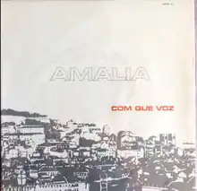 Com Que Voz is a fado album recorded by Amália Rodrigues in January 1969 and released in March 1970 on the EMI and Valentim de Carvalho labels. It reached No. 1 on the Associação Fonográfica Portuguesa (AFP) chart in Portugal. Amália was accompanied on the album by Pedro Leal on viola and José Fontes Rocha on Portuguese guitar.[1]