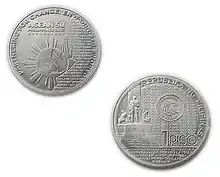 | 1 peso | 1947 | Liberation of the Philippines by Gen. Douglas MacArthur | 100,000 | 35 mm | 20.0 g | 90% silver |