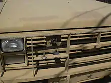 The militarization of standard GM trucks/SUVs to become LSSVs includes exterior changes such as Chemical Agent Resistant Coating (CARC) paint (Forest Green, Desert Sand, or 3-color Camouflage), blackout lights, military bumpers, a brush guard, a NATO slave receptacle/NATO trailer receptacle, a pintle hook, tow shackles and a 24/12 volt electrical system. The dashboard has additional controls and dataplates. The truck also can be equipped with weapon supports in the cab, cargo tie down hooks, folding troop seats, pioneer tools, winches, and other military accessories.[20] In the Canadian Army these vehicles are nicknamed "Milverado," a portmanteau for Military Silverado, "Milcot" for military commercial off-the-shelf and "Love W" short for LUVW.