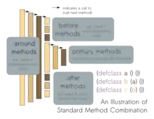 The Standard Method-Combination provides the primary, before, after and around methods explained above. There are other Method-Combinations with other method types. New (both simple and complex) Method-Combinations and method types can be defined.