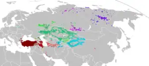 Map of the distribution of Common Turkic Languages across Eurasia