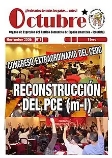 The Communist Party of Spain (Marxist–Leninist) (Spanish: Partido Comunista de España (marxista-leninista)) is an anti-revisionist Marxist-Leninist communist party in Spain, founded in 2006 by the Statewide Coordination of Communist Organizations (CEOC) and former PCE(ml) members.[1]